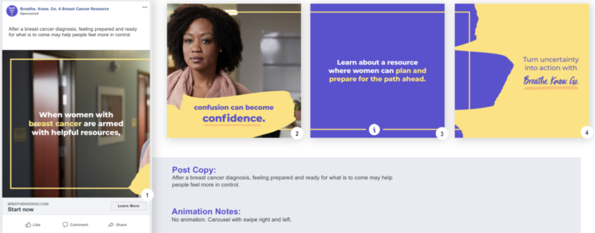 This unbranded campaign aimed to empower women with breast cancer to pause, consider their treatment options, and go forward with a plan.