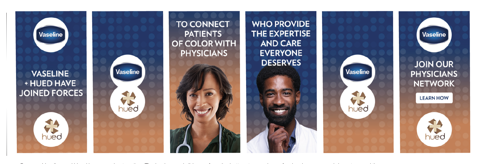 Vaseline partnered with hued to create a network of culturally sensitive medical professionals. These projects urge dermatologists to join the network.